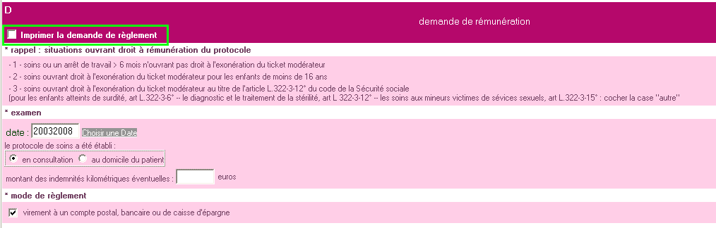 Protocole de soins : la demande de règlement n'est pas imprimée
